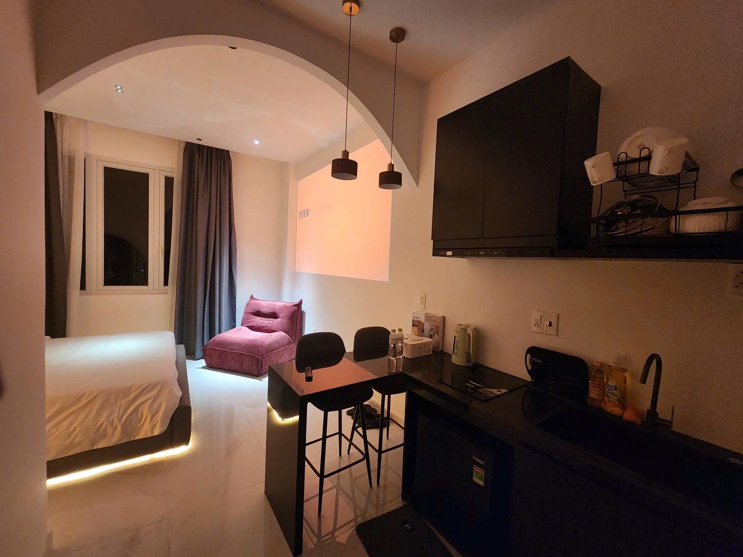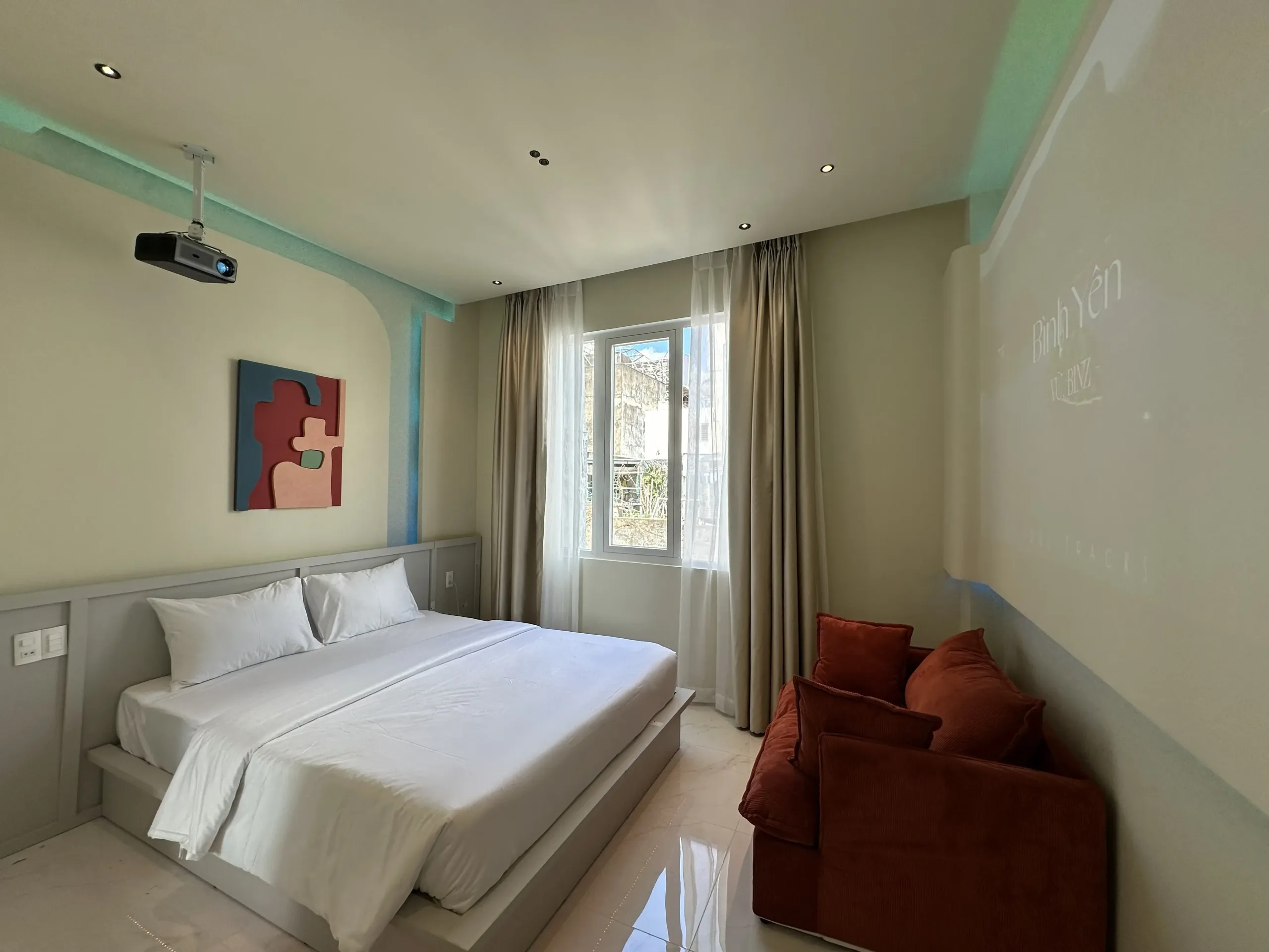 Đa dạng phong cách trang trí với các tone tone màu đa dạng; màu kem nhẹ nhàng, tinh tế, ánh sáng vàng ấm áp mang lại cảm giác ấm cúng và lãng mạn, Phòng phù hợp cho khách nghỉ dưỡng, công tác hoặc hẹn hò cặp đôi.