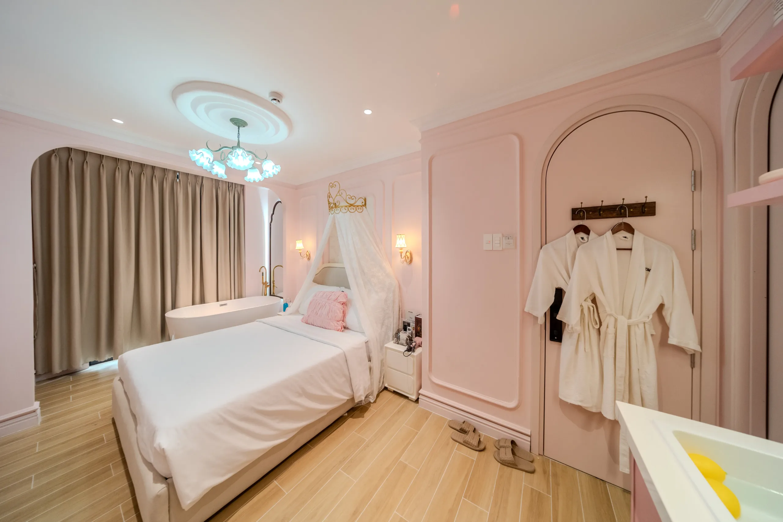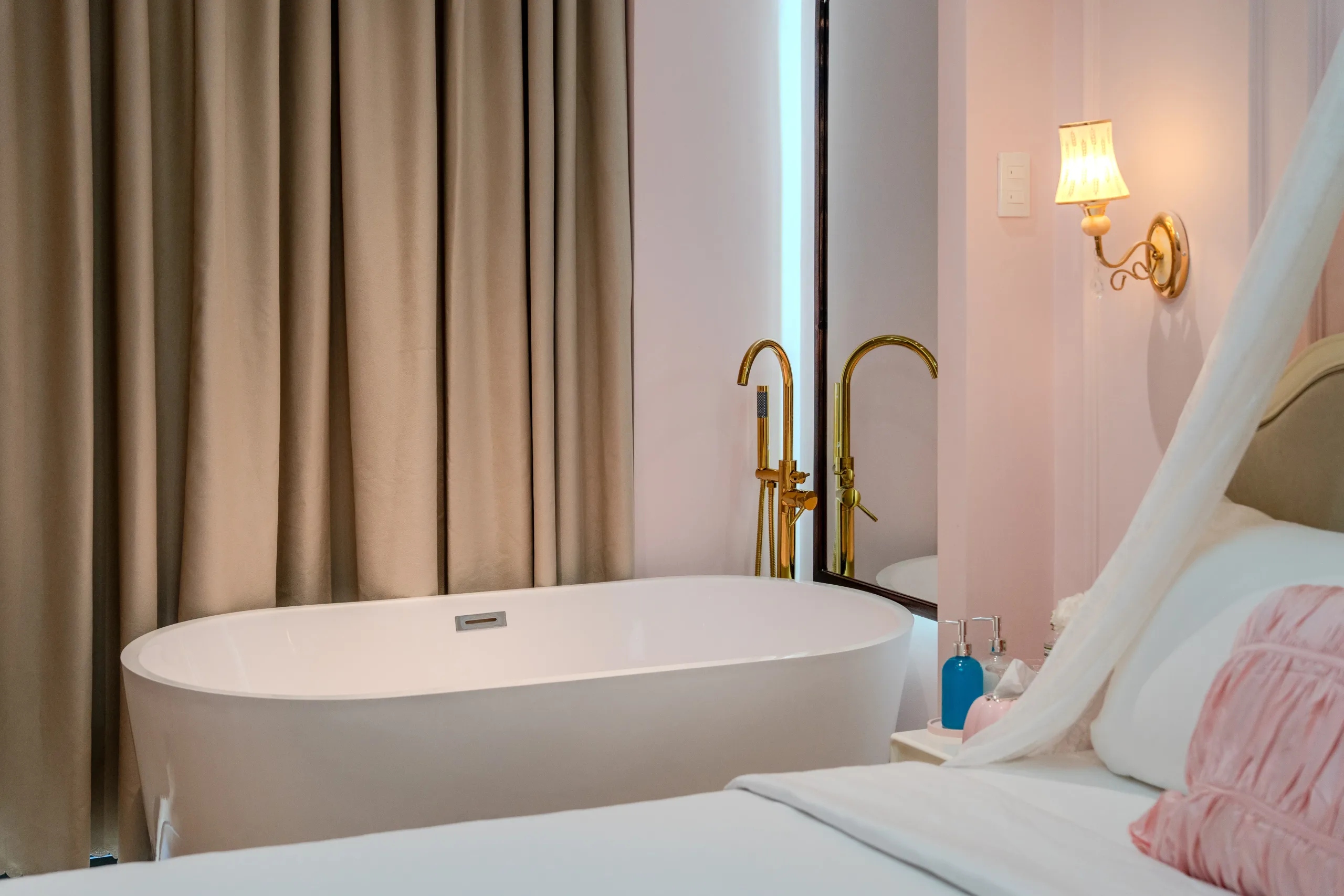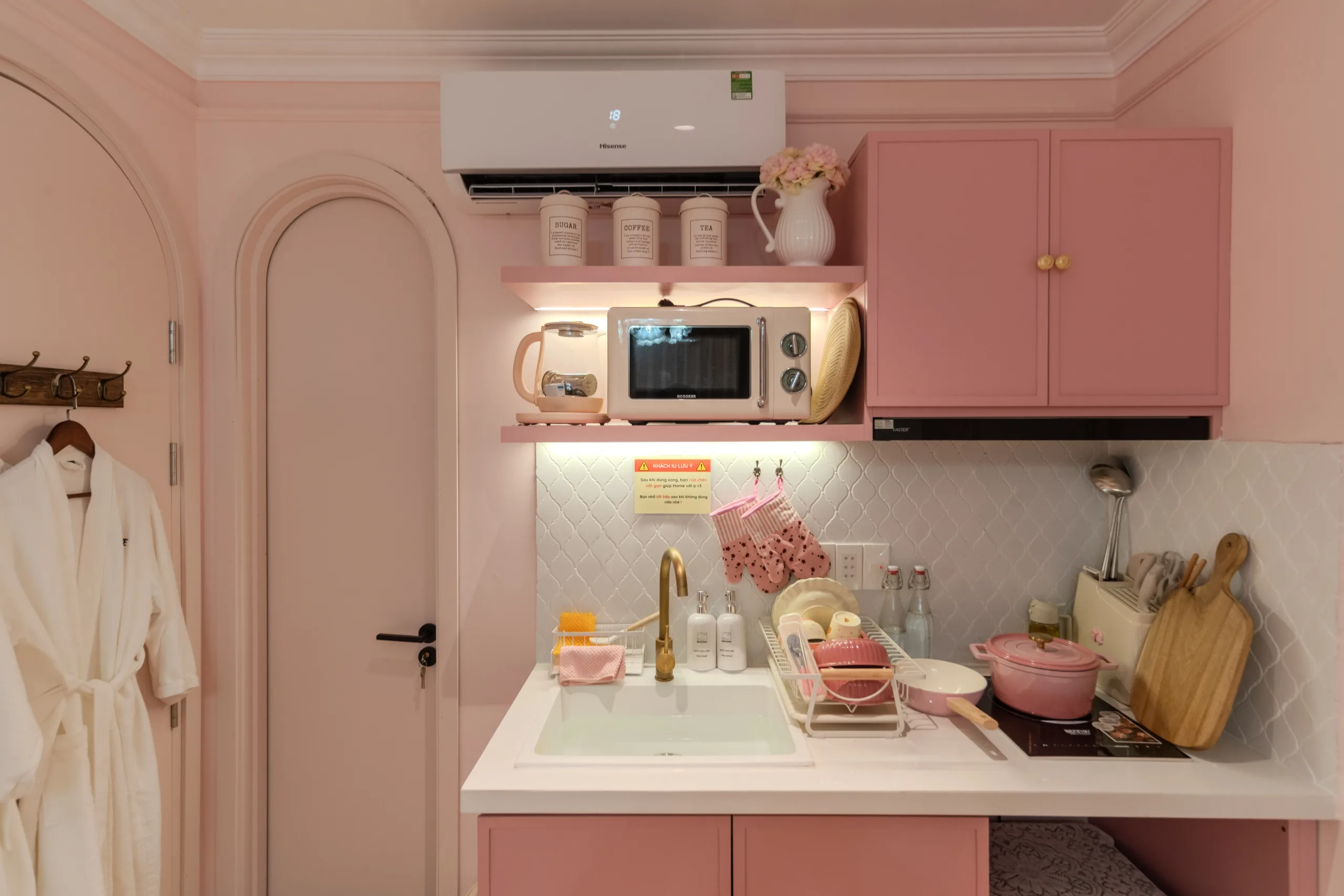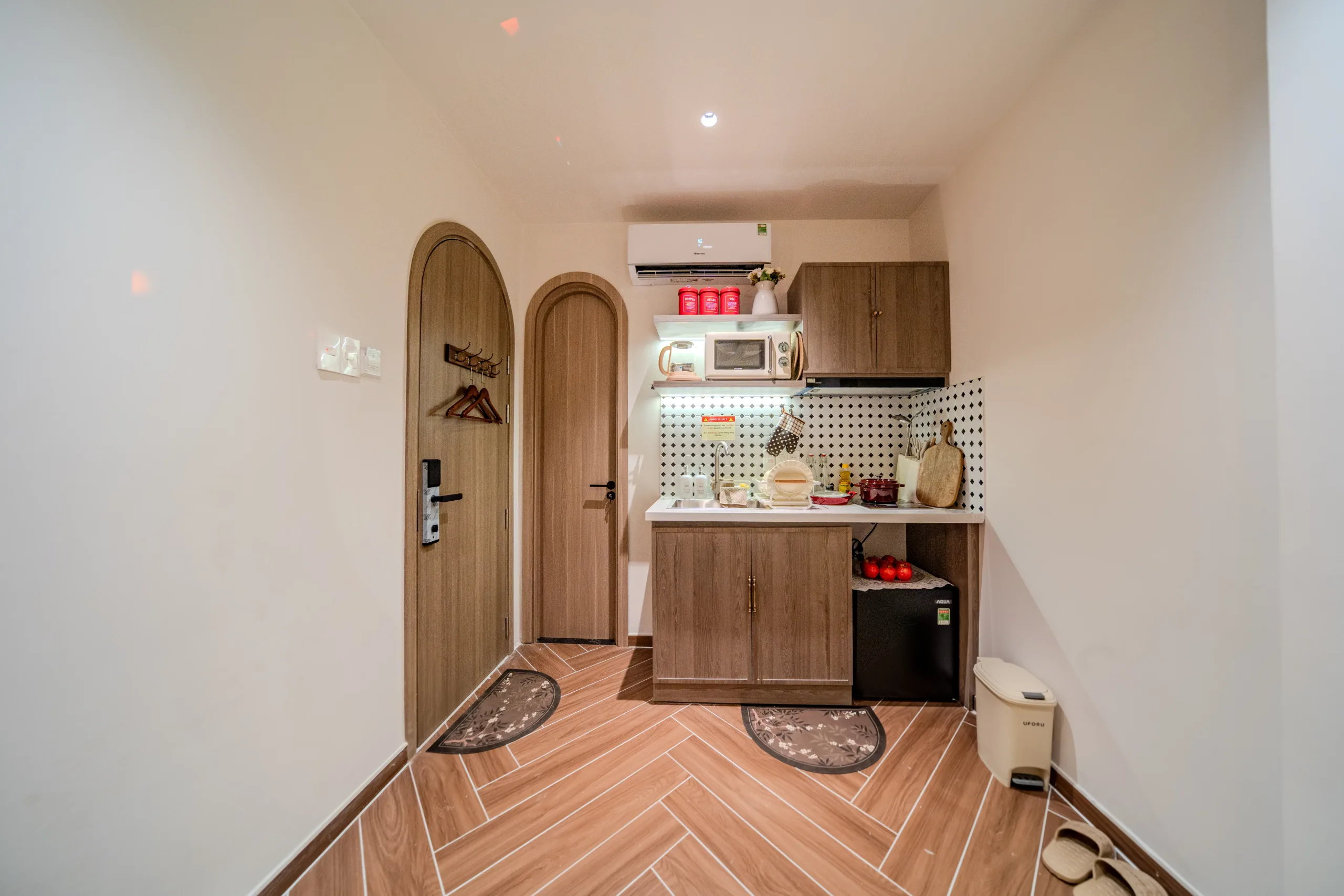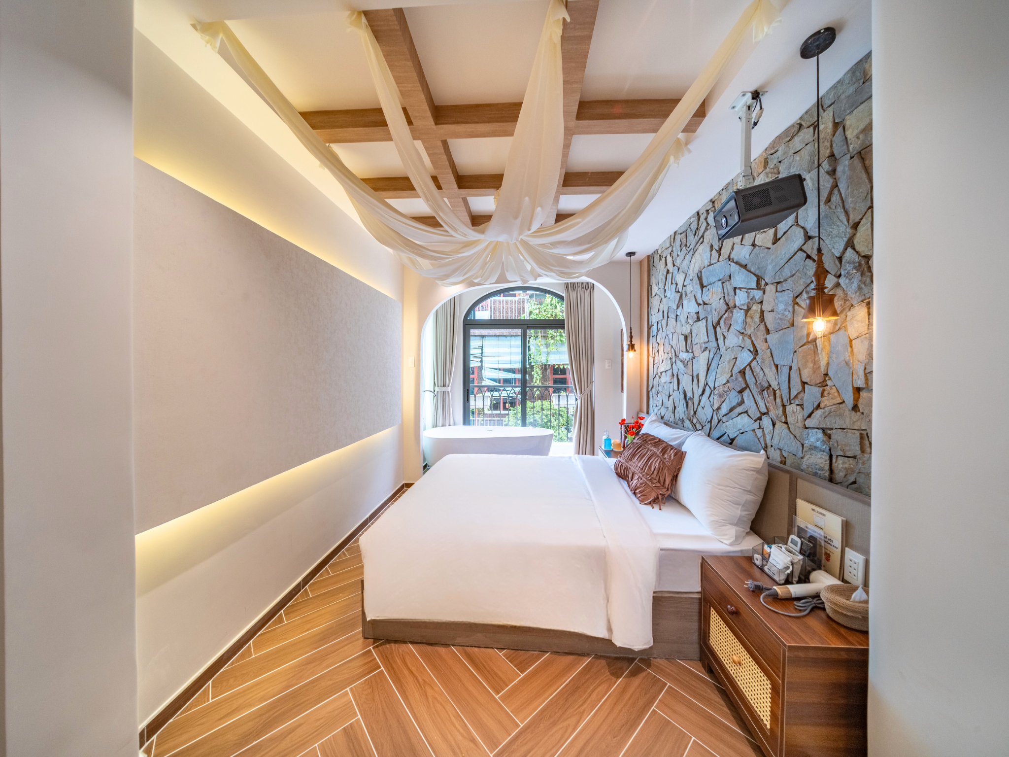 Trải nghiệm không gian nghỉ dưỡng đa sắc thái ngay tại trung tâm! Từ sắc Hồng lãng mạn với bồn tắm sang chảnh, chất Mộc ấm cúng với mảng tường đá tự nhiên, đến sắc Xanh mint trẻ trung hiện đại; mỗi phòng đều trang bị đầy đủ bếp mini và tiện nghi cao cấp. Hãy chọn cho mình một “màu sắc” yêu thích để tận hưởng những giây phút thư giãn tuyệt vời nhất.